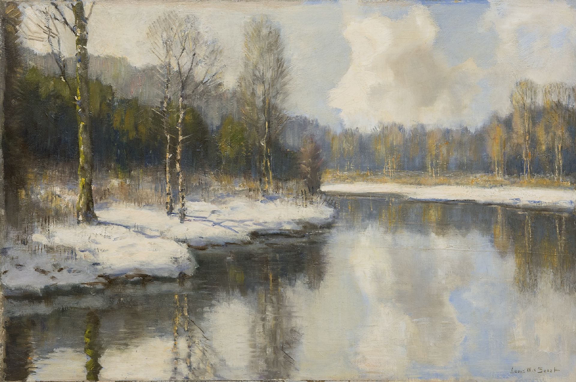 Louis van Soest was a painter of the Veluwe region in the Netherlands, active in the same circle as Jan van Vuuren and Edzard Koning. His snowy landscapes bear the stamp of a true Dutch impressionist, depicting nature sometimes blanketed in downy white with blue-toned shadows, sometimes suffused with a haze of light. Or he painted the melting snow with rivulets of water and passages of bare earth in greyish-green and brown. Van Soest's pupils included Queen Wilhelmina.