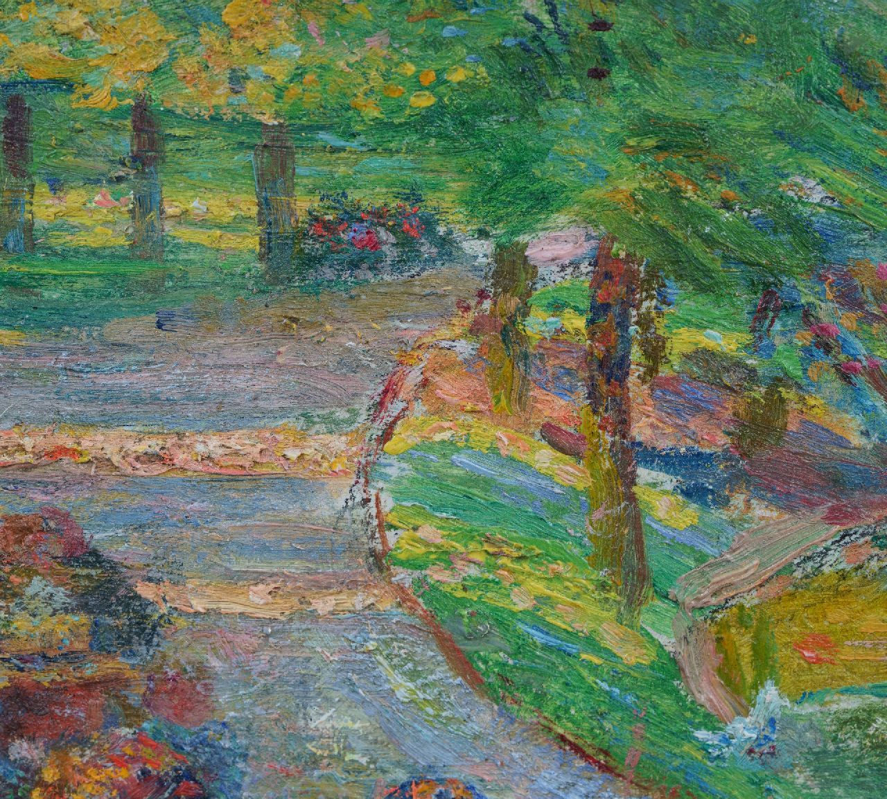 Born in Paris in 1864, the French painter Ludovic Vallée exhibited from 1903 at the Salon des Indépendants and at the Exposition Nationale in his hometown. Like contemporary Paul Signac, Vallée painted in the pointillist technique that he borrowed from Georges Seurat, but that he interpreted more freely and less scientifically. This resulted in colourful landscapes and park views, as well as beautiful, tranquil still lifes.