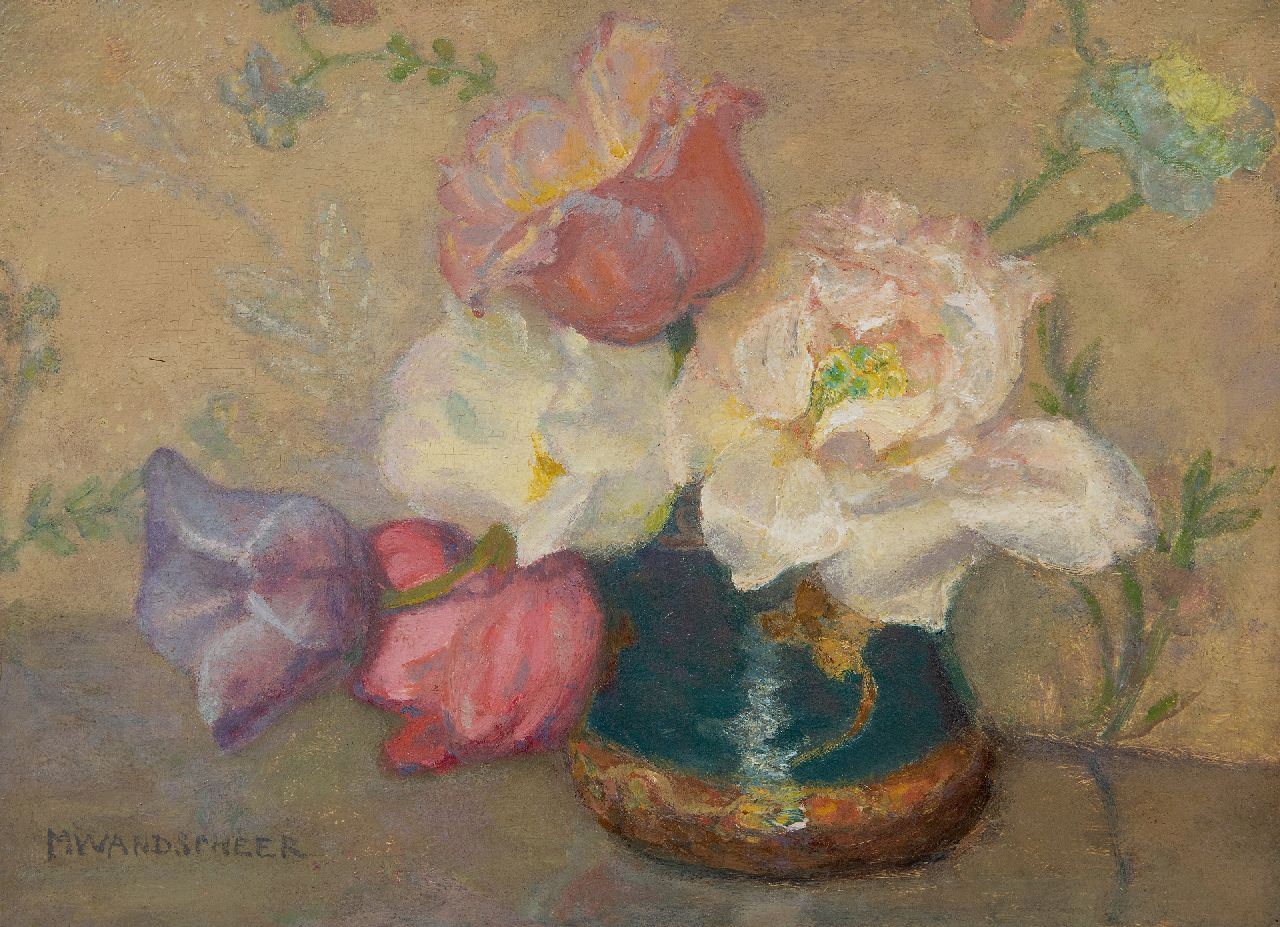 Marie Wandscheer lived and worked in Amsterdam until 1895, then in Ede. She received her training in the famous 'ladies class' of the Rijksacademie in Amsterdam. There she met, among others, the Amsterdam joffer Lizzy Ansingh, with whom she befriended. Marie Wandscheer drew, painted and pastured still lifes and flower still lifes, but also of her figures, interiors and many beautiful portraits. In Ede she learned etchings from Willem Witsen when he lived there from 1893 to 1902 in villa Zonneberg.