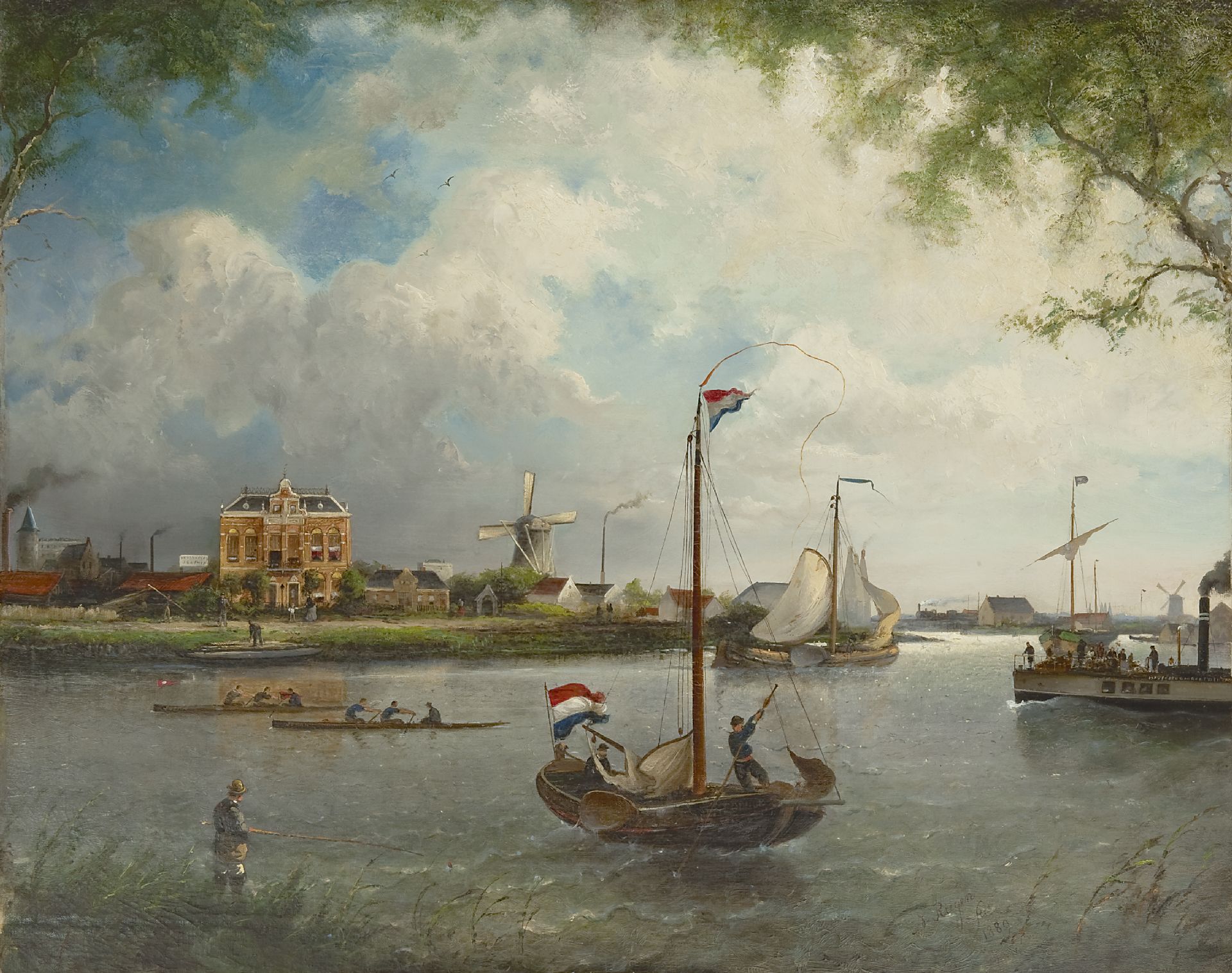 Nicolaas Riegen artwork • painting • previously for sale A view of the Amstel near the Omval