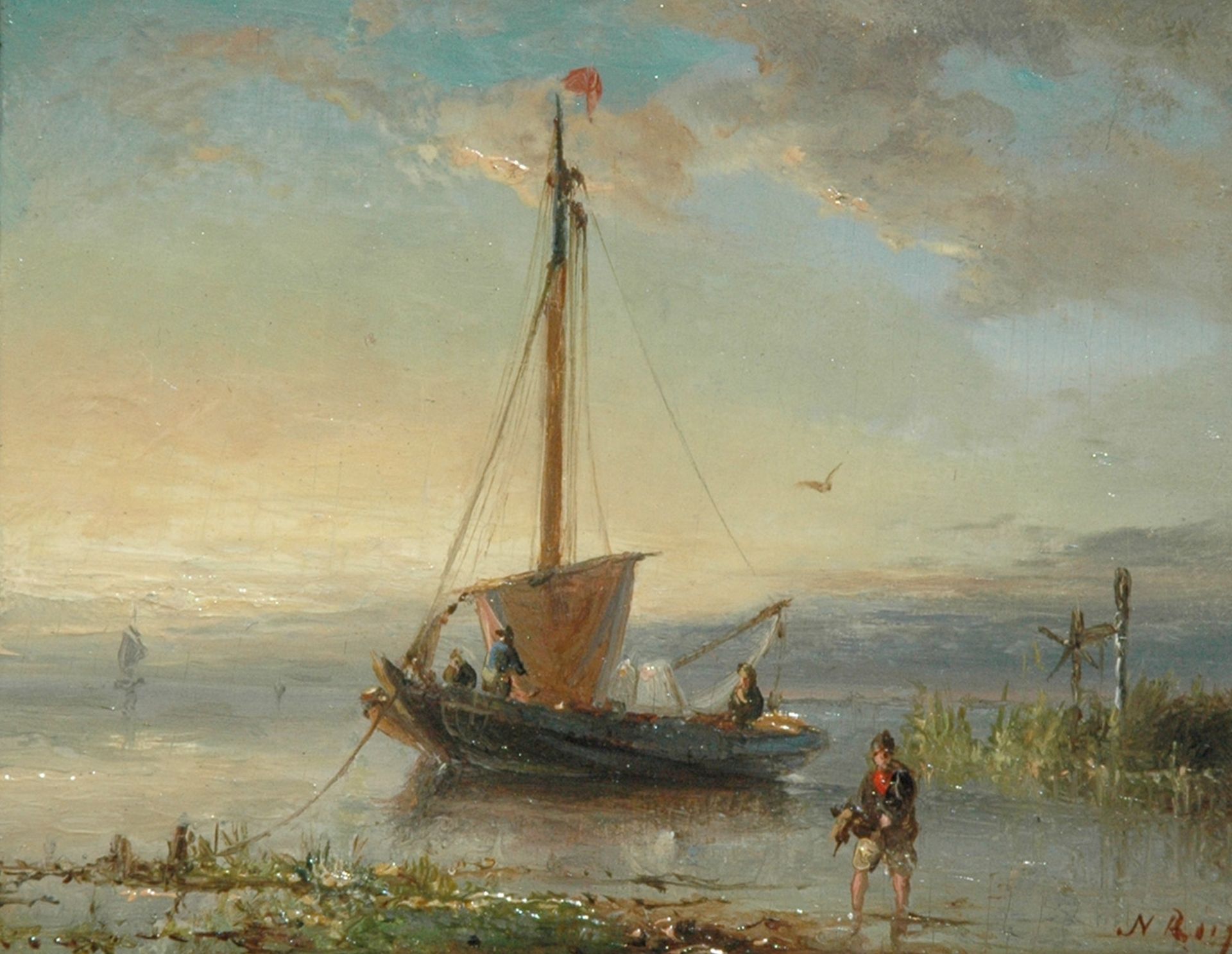 Nicolaas Riegen artwork • painting • previously for sale The fishingboat at the waterside