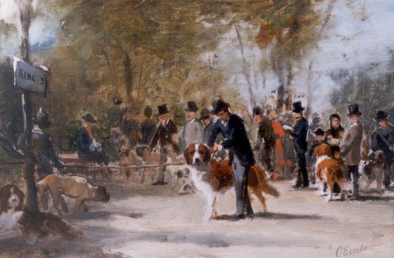 Otto Eerelman was first a pupil at the Minerva Academy, Groningen, and later attended the Antwerp Academy (1864-1865). Having begun as a painter of old Dutch interiors and genre works, Eerelman gradually established a reputation as a painter of horses. He is best known for his paintings of Queen Wilhelmina in riding habit. His later work from the early 1880s is almost entirely devoted to dog portraits or groups of young dogs.