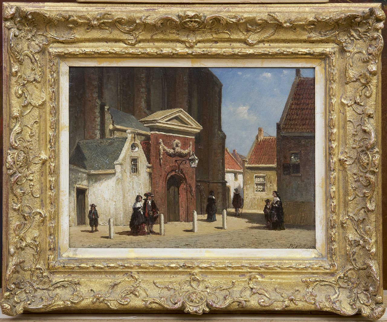 Petrus Gerardus Vertin received his training at the academy in The Hague, which means that his work is considered part of The Hague romanticism. He painted Dutch cityscapes and streets in summer and winter. He occasionally had these upholstered by his friends Charles Rochussen, J.F. Hoppenbrouwers and S.L. Verveer. Sometimes his work is topographical, but mostly Vertin opted for fantasy images. In his winter views he paid a lot of attention to the reflection of light on snow-covered roofs, window frames and sidewalks.