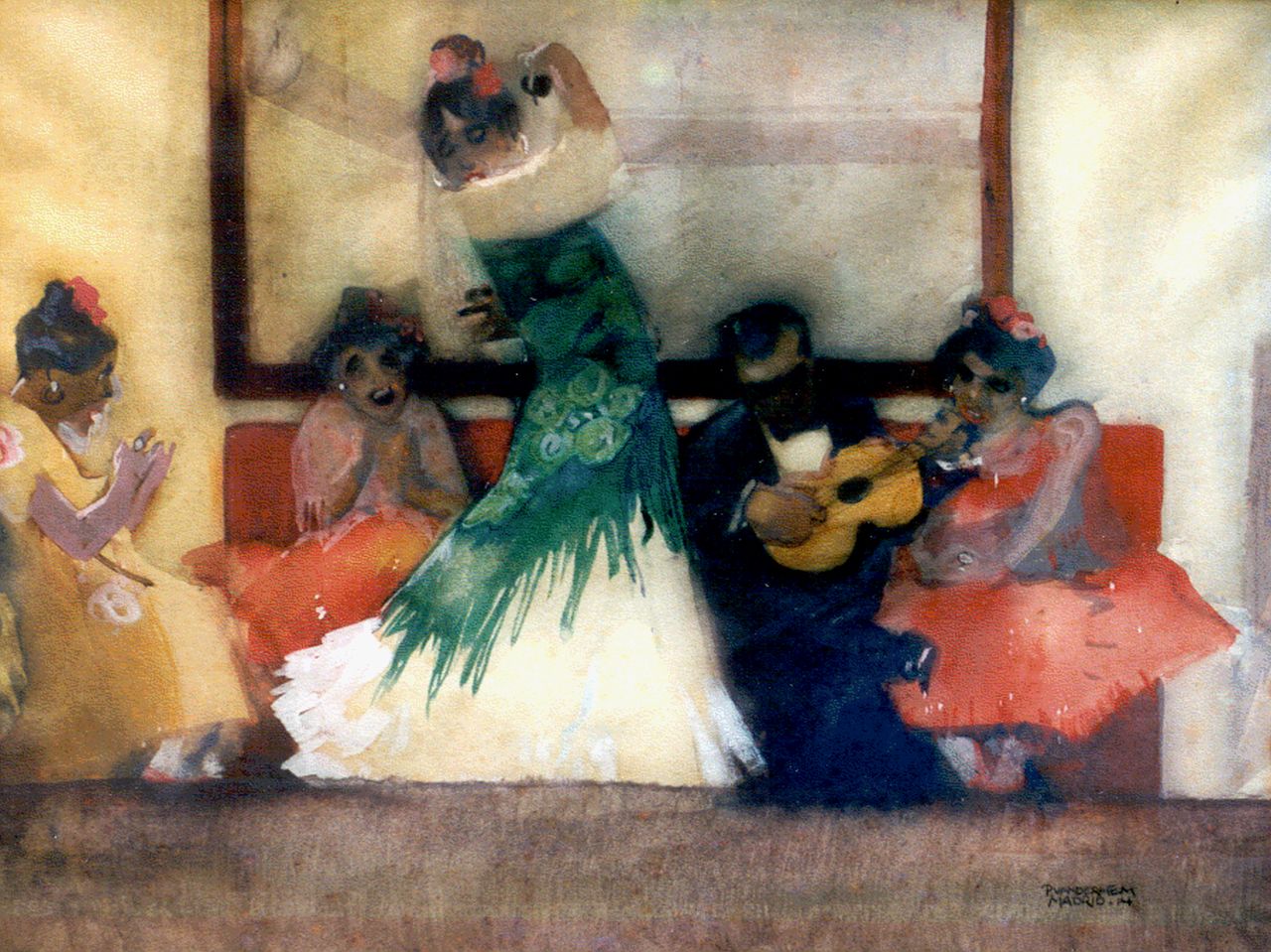 Piet van der Hem lived and worked in Amsterdam and around 1915 was one of the group of modern artists that also included Gestel and Sluijters. His preferred subject was scenes of cosmopolitan nightlife, and during his frequent travels to Paris, Rome, Madrid and Moscow he depicted ordinary urban scenes and entertainments at cabarets, dance palaces and music halls. While staying in Volendam and Edam from 1917 to 1919, Van der Hem became interested in coastal life, local fisherfolk and the fashionable tourists who visited their villages. Besides painting, he also worked as an illustrator and political cartoonist for the De Haagsche Post and De Haagsche Courant newspapers.