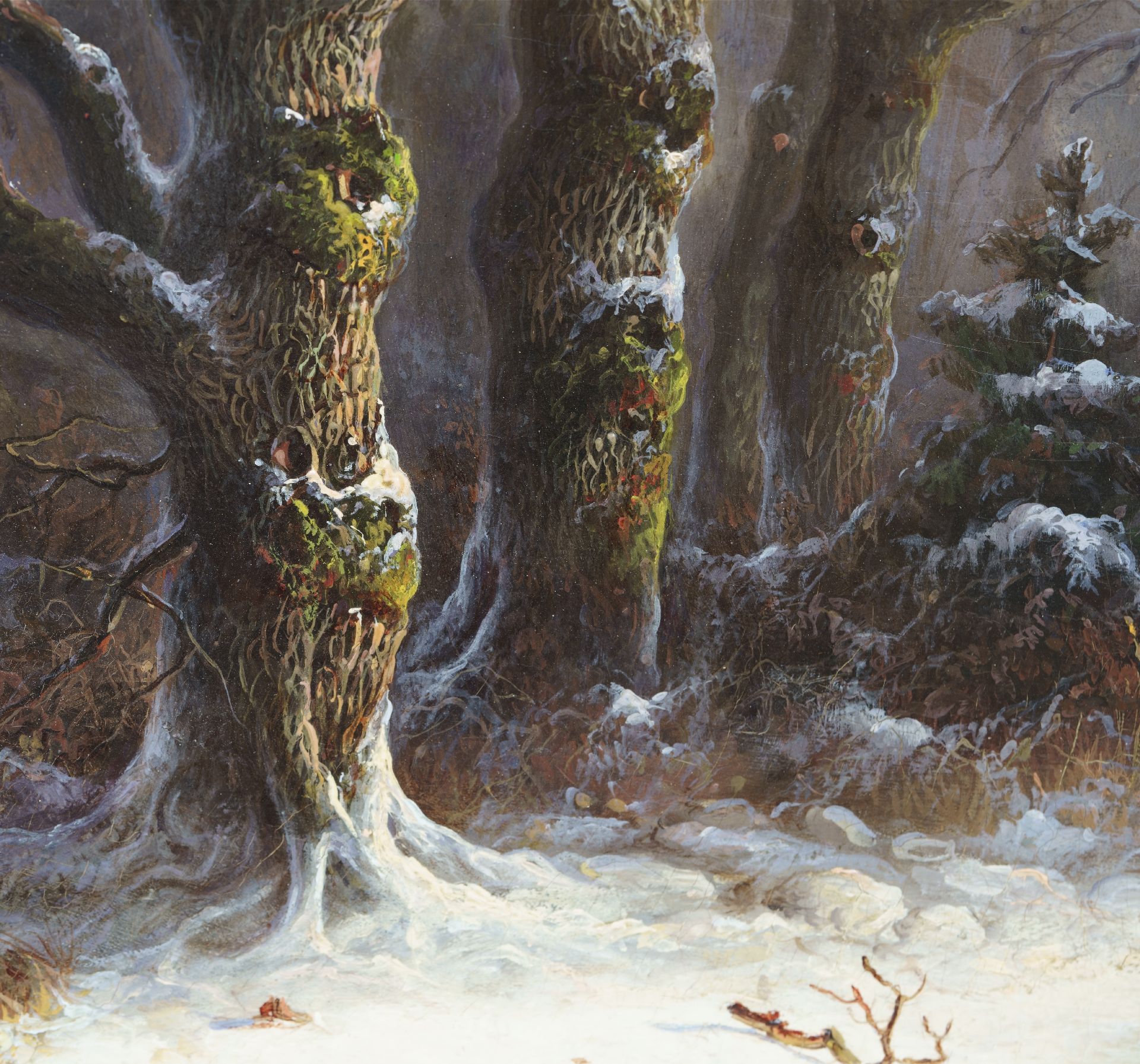 Pieter Kluyver artwork • painting • for sale Country folk on a snowy forest path i.o.
