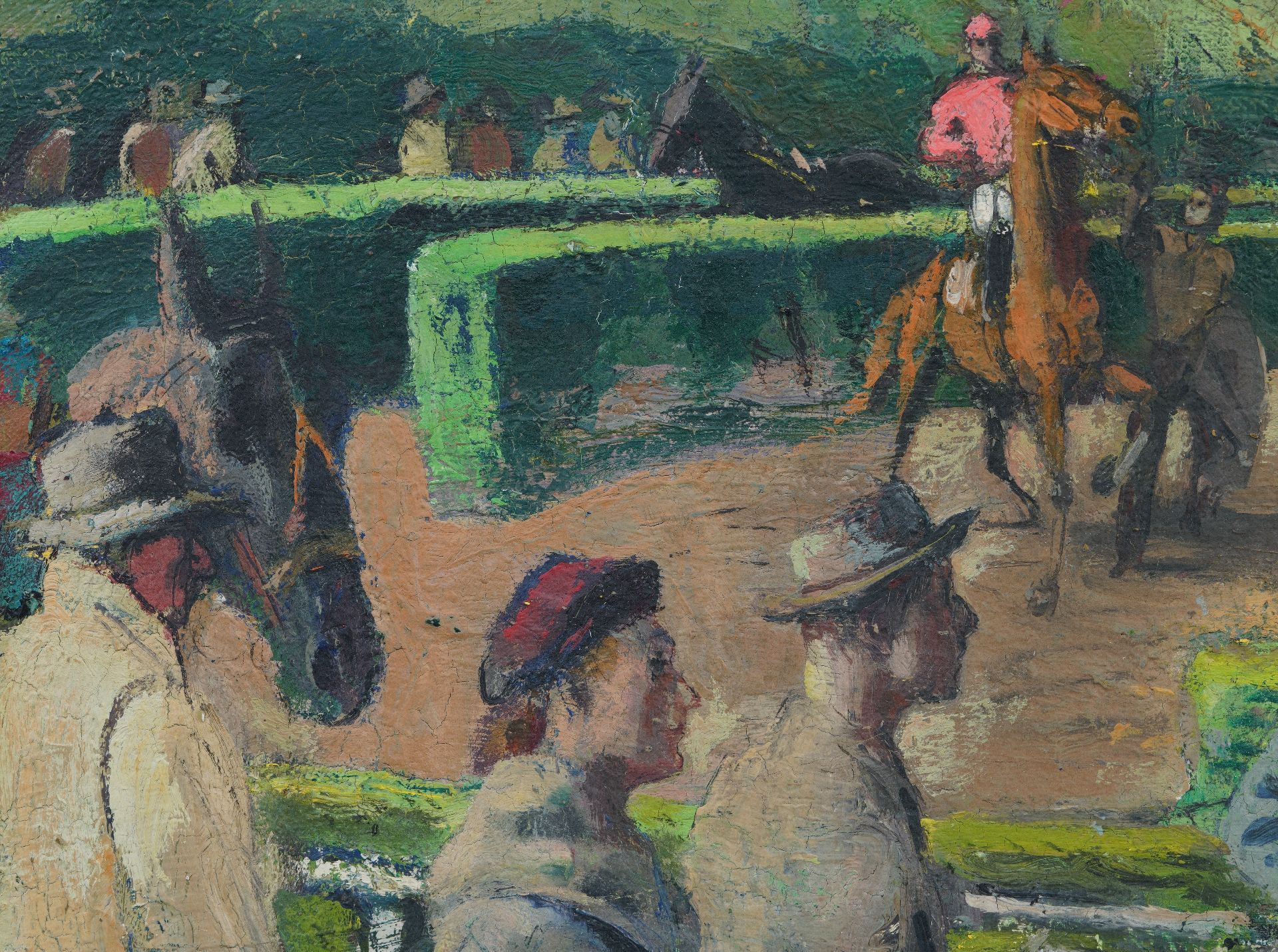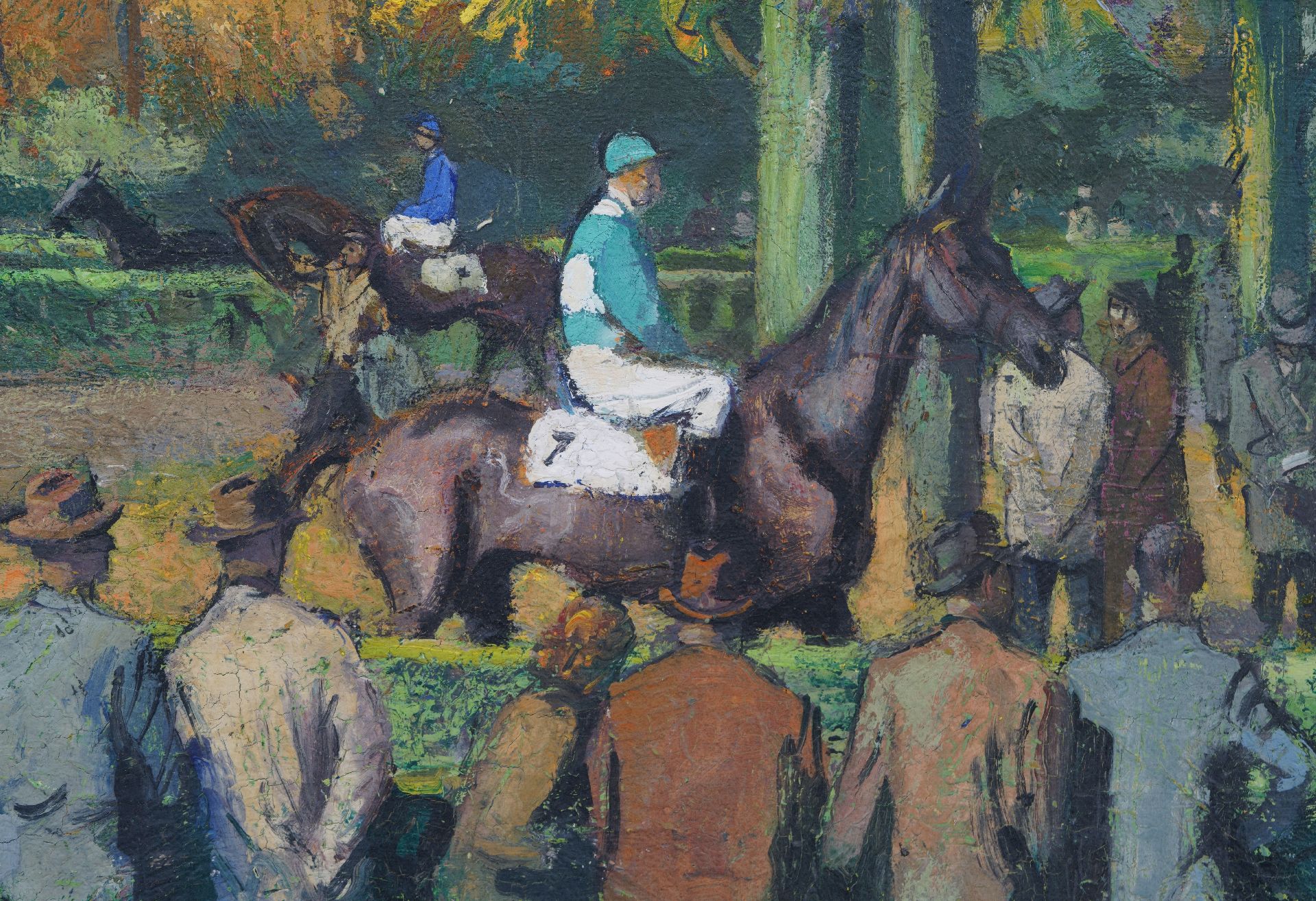 Pol Dom artwork • painting • for sale Audience watching the racehorses in the paddock at Duindigt racecourse in Wassenaar