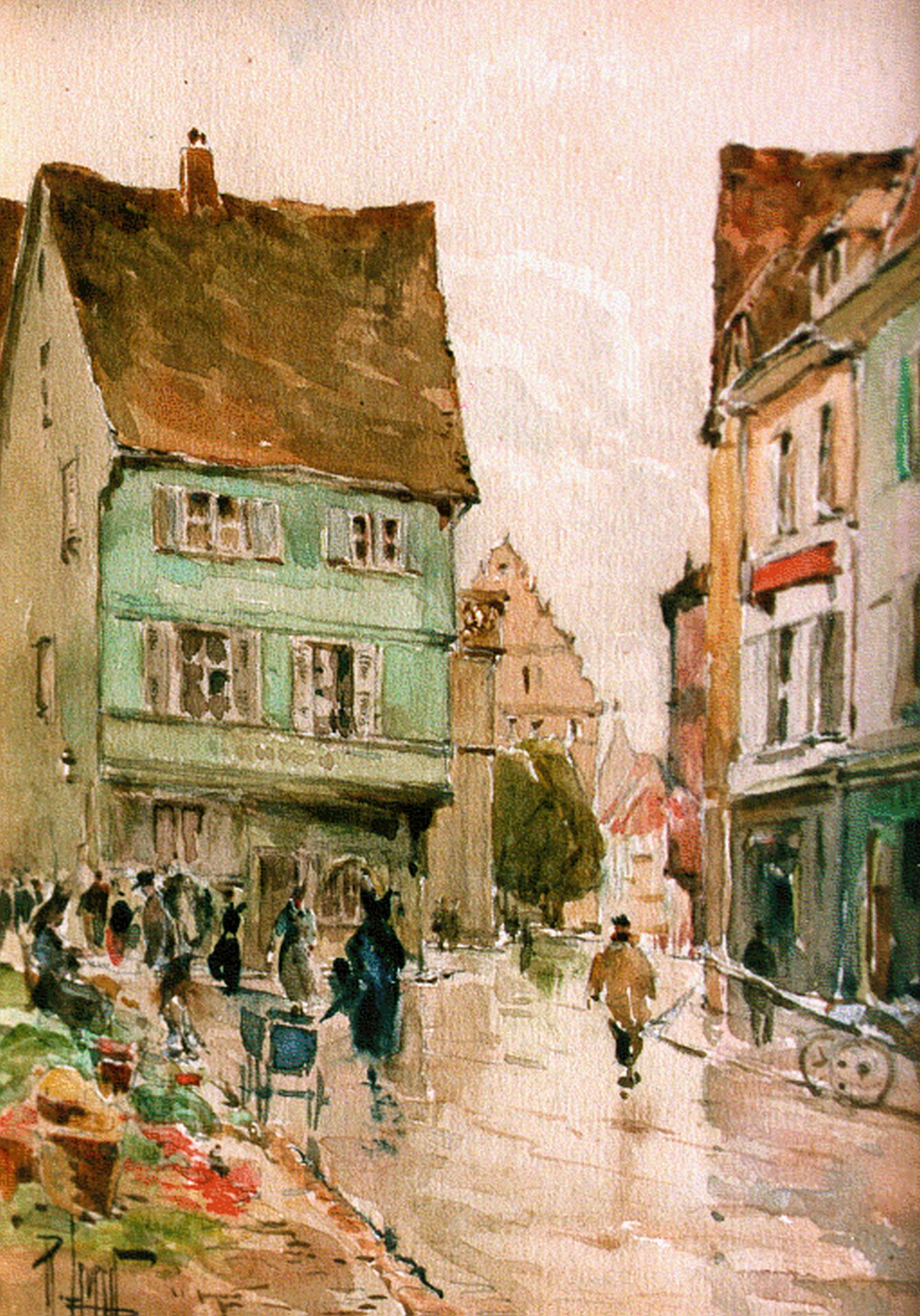René Leverd artwork • watercolour • drawing • previously for sale Street in Colmar, Elzas
