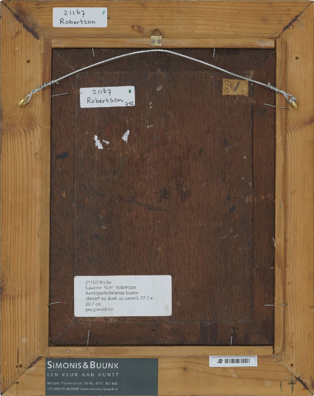 Suze Robertson lived and worked in The Hague, Rotterdam and Amsterdam, among others. She was a student of the Rijksakademie in Amsterdam and the Akademie van Beeldende Kunsten in The Hague. She married the painter Richard Bisschop in 1892. Robertson painted and drew still lifes, figures (nudes), landscapes and cityscapes. Her work is characterized by the strong brush treatment and the heavy deep colors.