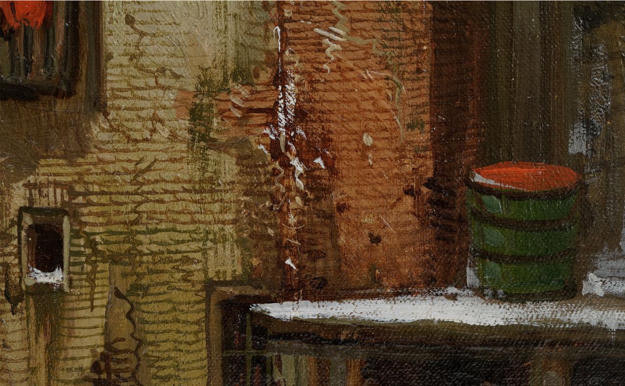 The son of the marine painter Hermanus Koekkoek Sr. was the only one of the extensive family of painters to specialize in the Dutch cityscape, with Cornelis Springer as his great example. He lived in Amsterdam but made many sketching trips through the Netherlands. In 1888 he must have made a trip to London. Willem Koekkoek's cityscapes are a combination of historical reconstruction and fantasy. His paintings were especially popular abroad because they corresponded to the idyllic image that people had of the old Dutch towns.