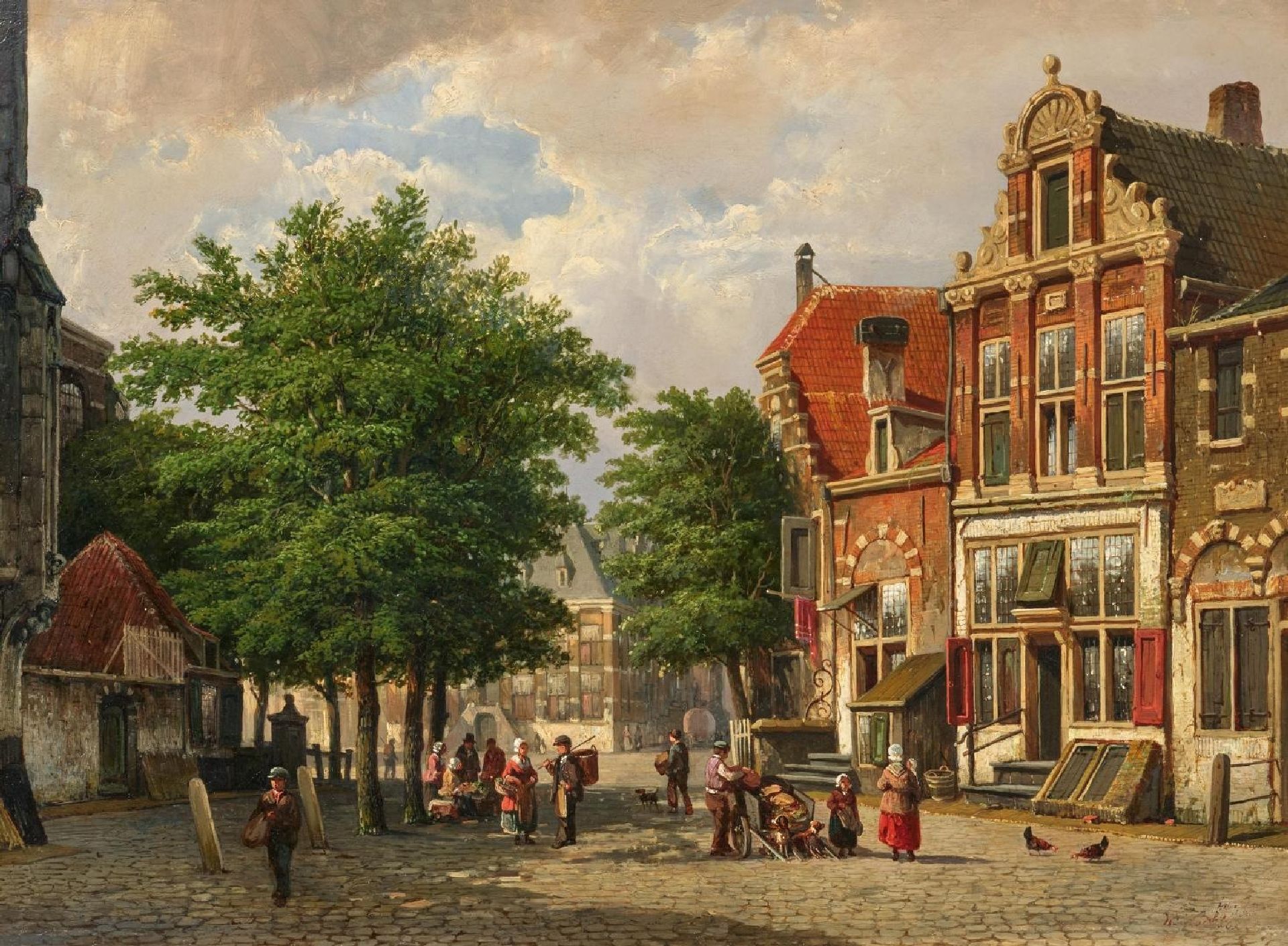 Willem Koekkoek artwork • painting • for sale Sommerliches Stadtbild mit Figuren bei einer Kirche