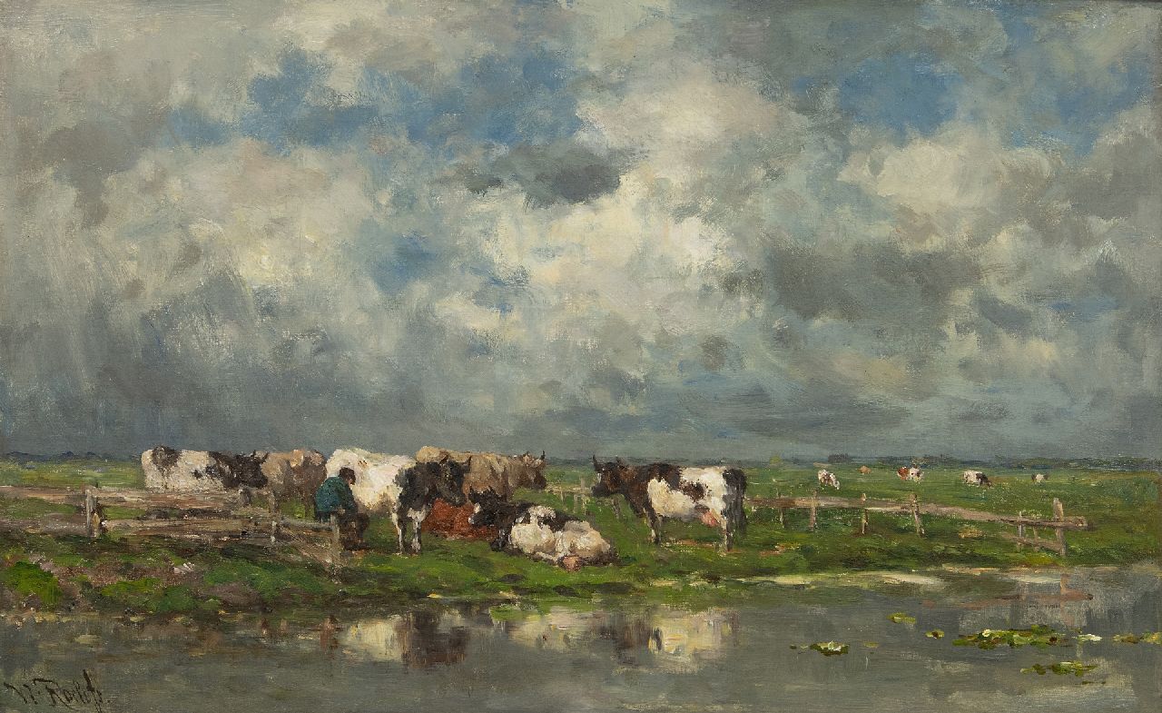 Willem Roelofs artwork • painting • previously for sale Milking time