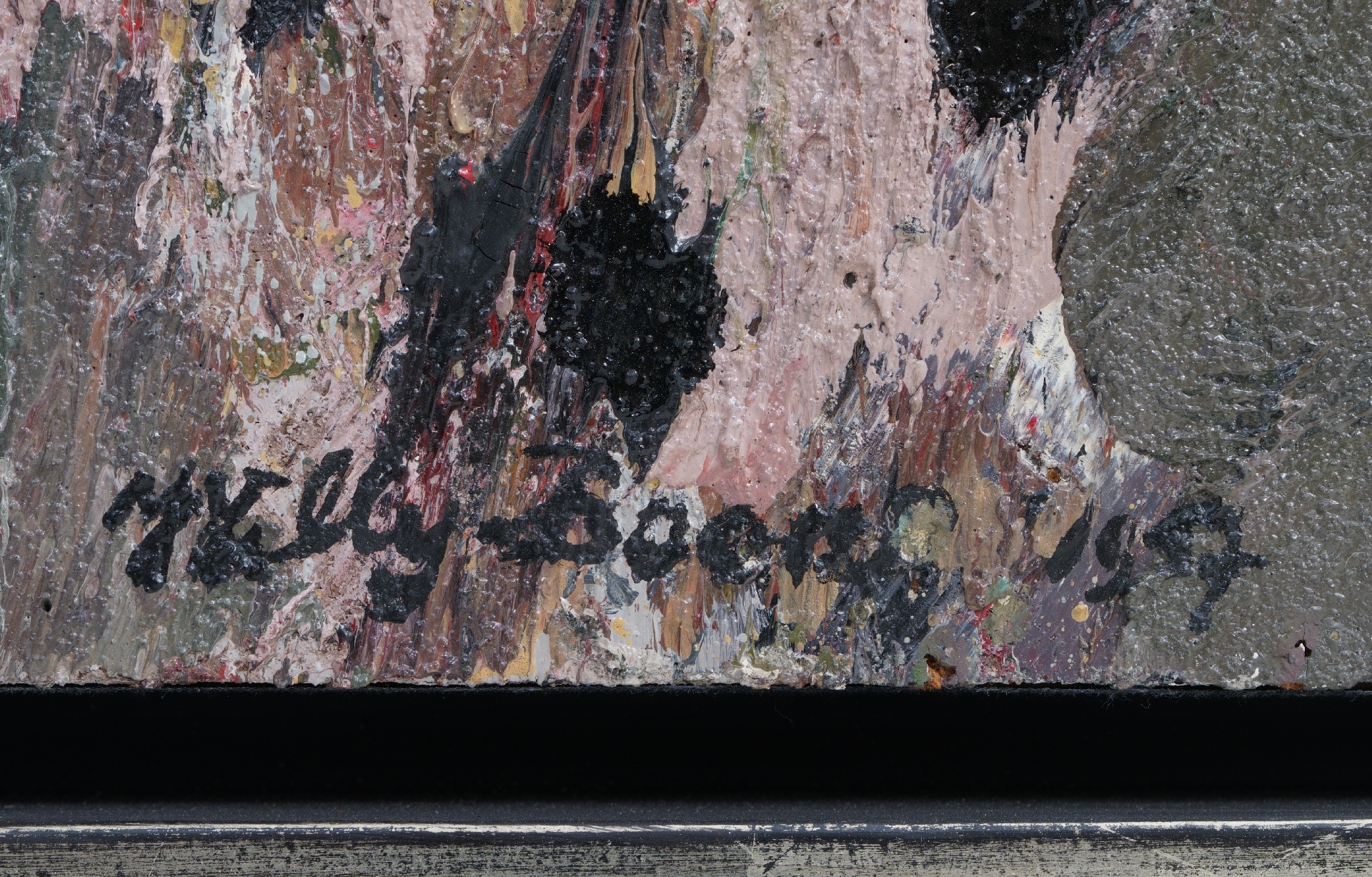 oil on masonite 61.5 x 29.5 cm, signed l.o. and dated '57