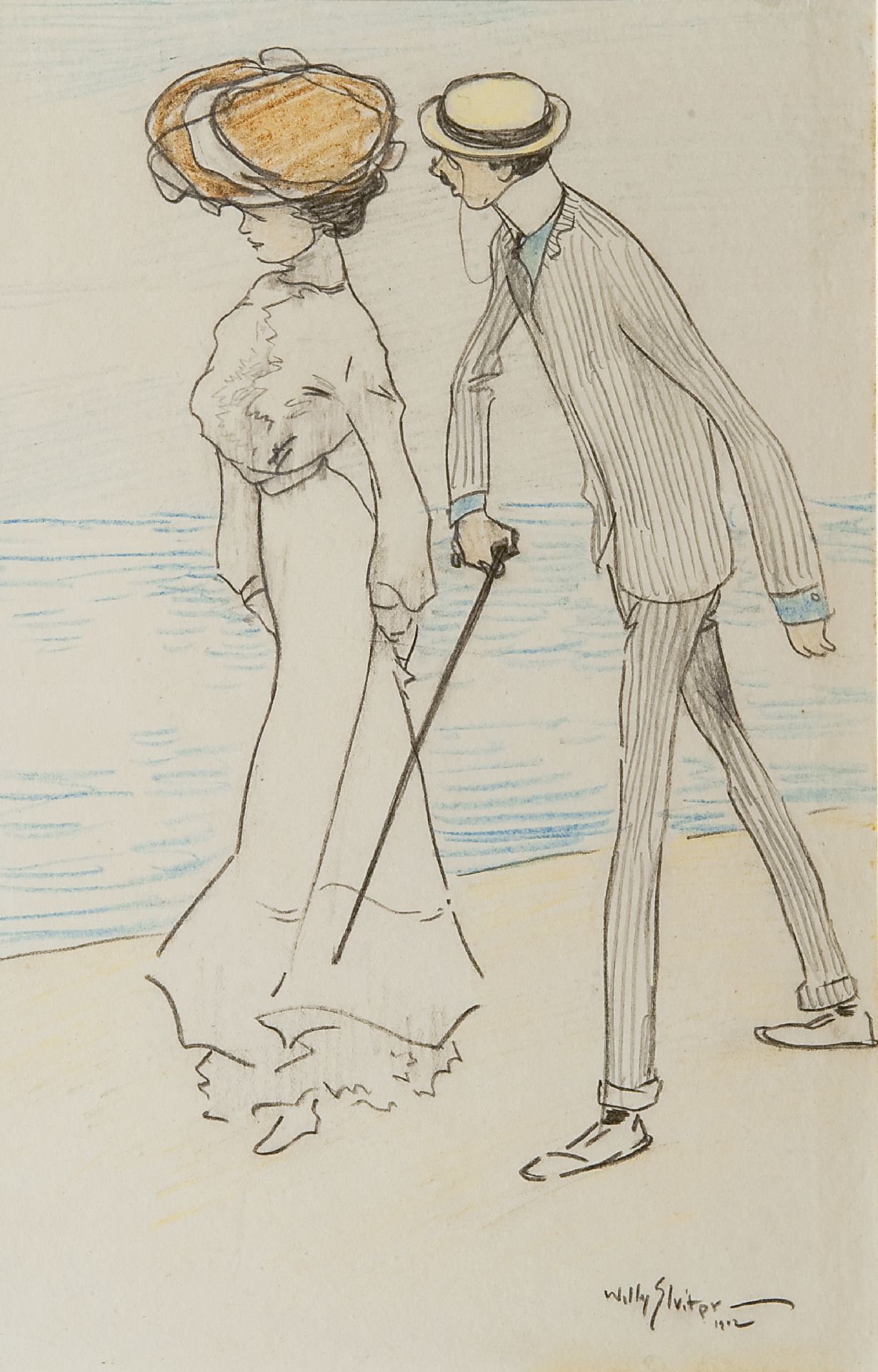 Willy Sluiter had two distinct talents: he painted splendid, impressionist landscapes as well as harbour and city views. He could draw rapidly, able to capture life in swift, often funny, sketches and watercolours. Sluiter made numerous drawings of his friends and family, the sophisticated beach life in Scheveningen, and the wealthy snow tourists in Switzerland, with which he shows himself to be a chronicler of his times. His talent for drawing led to many commissions for book covers, illustrations, posters and other forms of advertising. From the nineteen twenties on he was a well-known and highly successful artist.