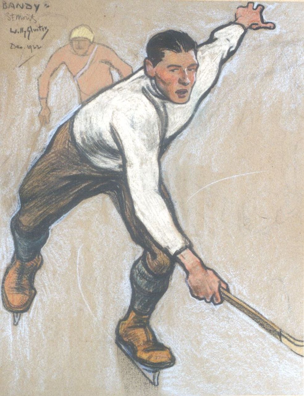 Willy Sluiter artwork • watercolour • drawing • previously for sale Bandy players, St. Moritz