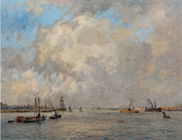 The Damrak in Amsterdam, oil on canvas 61.0 x 81.2 cm, signed l.l.