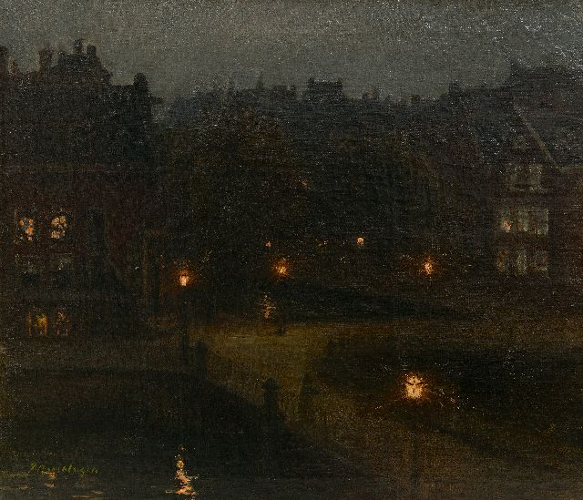 Behind the Nieuwe Kerk, Amsterdam, oil on canvas 60.8 x 40.4 cm, signed l.r. and without frame